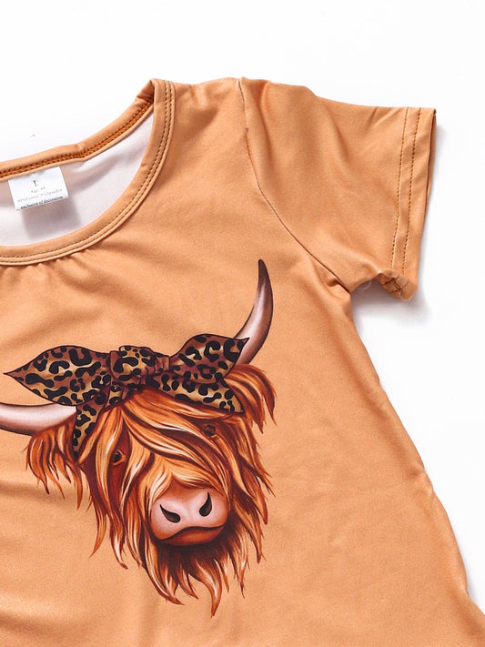 Cows Printed Cheetah Fringe Skirt 2 Pcs Set